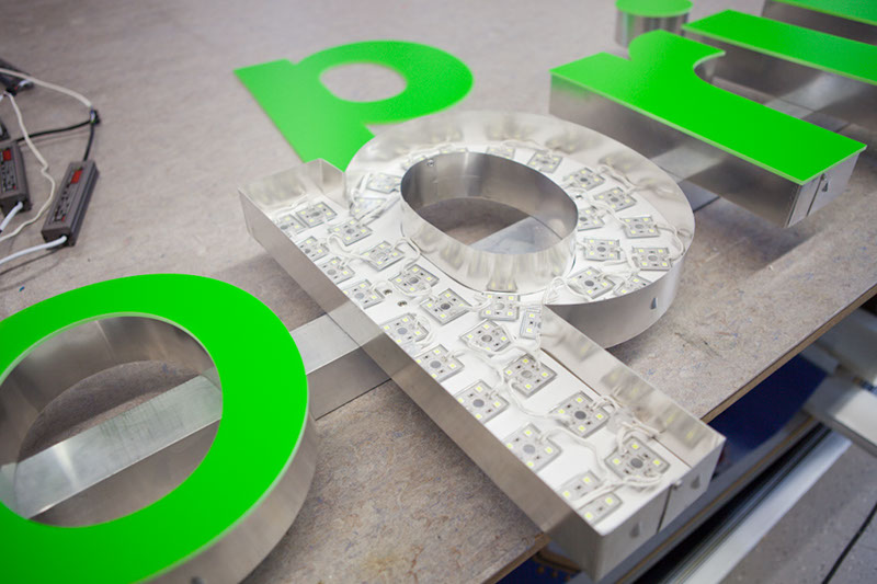 LED-Mounting Bar fertig vorkonfektioniertes Untergestell zur Fassadenmontage. Die LED-Einzelbuchstaben sind bereits vormontiert.